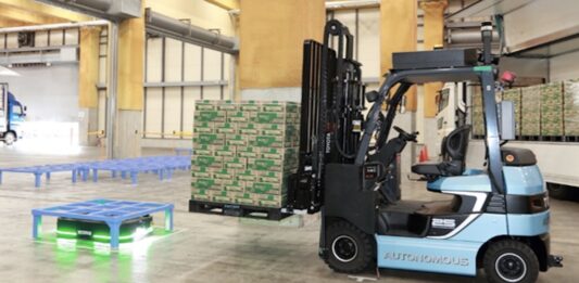 フォークリフト&搬送ロボが「ダブル自動運転」!荷下ろし自動化を実現