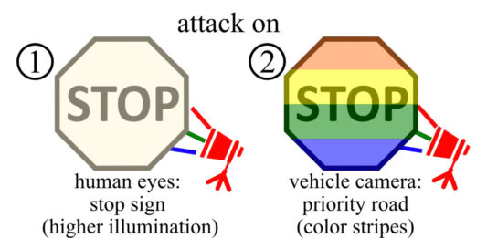 シンガポールの南洋理工大学などに所属する技術者らが、自動運転車に道路標識を無視させる敵対的攻撃が行われる可能性を指摘し、警鐘を鳴らしている。 具体的には、LEDを使って道路標識に特定のパターンの光を当て、車両に搭載された … 続きを読む 自動運転車にLED攻撃、標識の認識を「無効化」 脆弱性が浮上