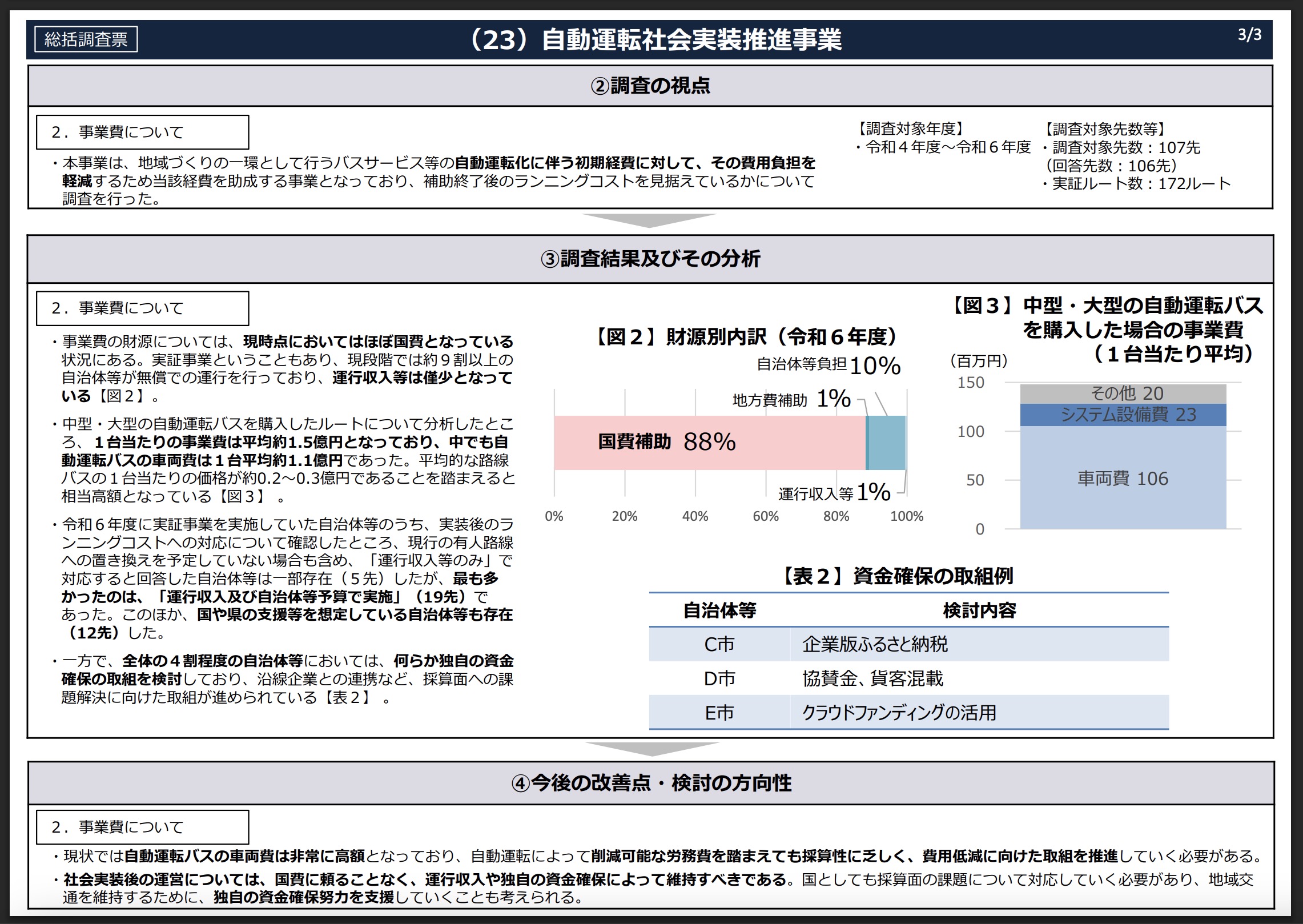 【参考】財務省の予算執行調査については「自動運転実証、補助金受け「走行たった200m」 財務省が指摘」も参照。