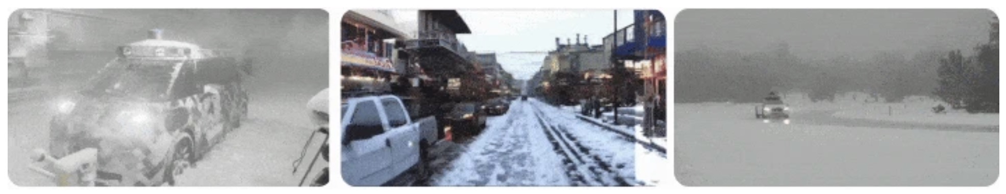 雪は単一の現象ではなく、人間や自動運転システムにさまざまな影響を及ぼす条件の集合体であり、大気の状態はかすかな積雪から完全なホワイトアウトまでさまざまで、路面も雪に覆われていたり凍結していたりする場合もある。さらに、路肩の積雪などの環境要因が状況を複雑化させる。