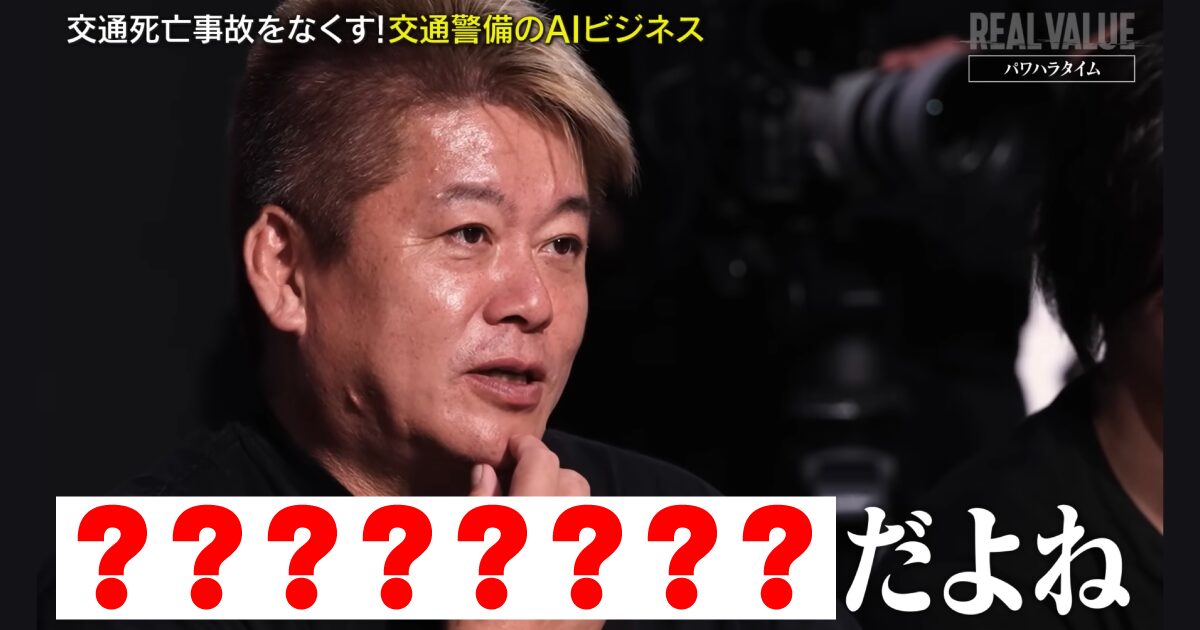 ホリエモンが「8文字」で称賛したビジネスとは──。YouTube番組「REAL VALUE」の一幕で、メインのAI交通警備システムから派生する形で自動運転関連ビジネスが紹介され、実業家の堀江貴文氏が称賛する場面があった。