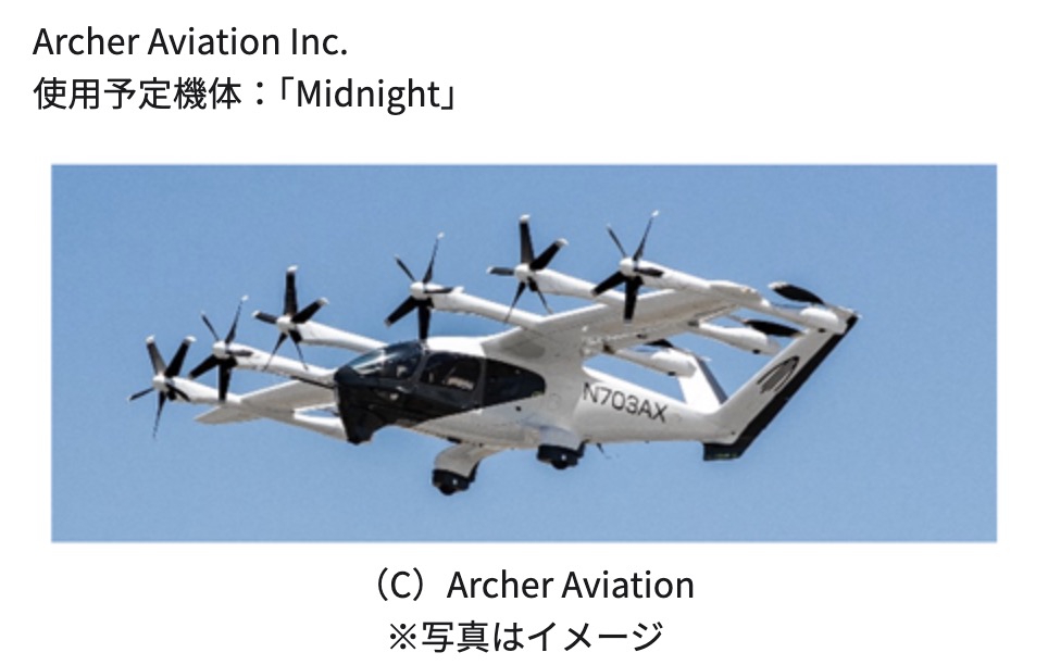 Midnightは大阪・関西万博で展示されたArcher Aviationの主力モデルだ。Soracleとともに大阪府でのエアタクシー事業も計画している。