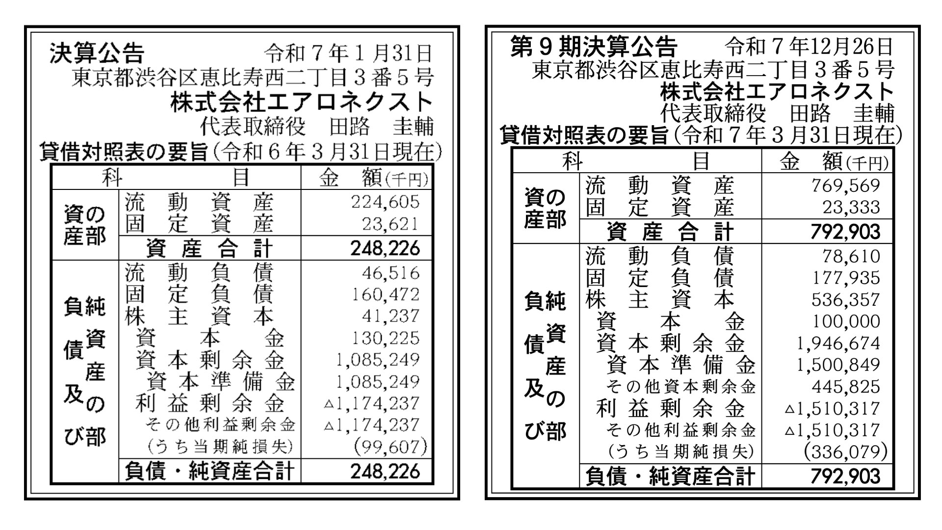 次世代ドローンや空飛ぶゴンドラの開発などを手掛けるスタートアップである株式会社エアロネクスト(本社:東京都渋谷区/代表取締役:田路圭輔)の第9期決算公告(2025年3月現在)が、官報に掲載されている。
