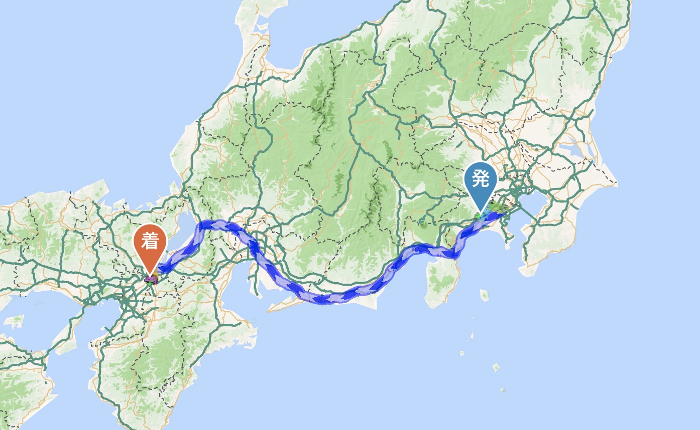 この仮定のもと、同所を有人走行した場合、どのくらいの時間を要するのか。ルートはいくつか考えられるが、厚木ICから東名高速道路で御殿場JCTに向かい、新東名高速道路で豊田東JCTへ。伊勢湾岸自動車道で四日市JCTへ向かい、新名神高速道路で草津JCT、名神高速道路で瀬田東IC、京滋バイパスで久御山JCT、第二京阪道路で八幡東IC――といったルートが最短であり、一般的と思われる。