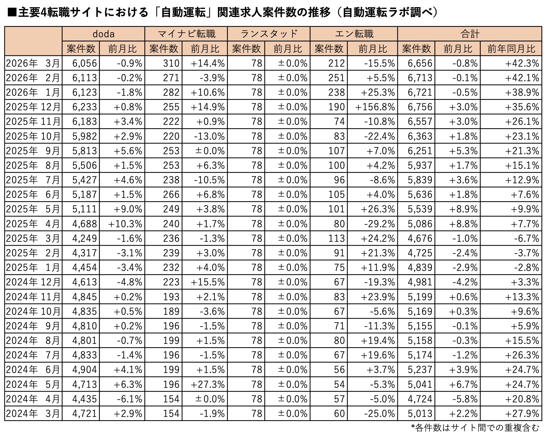 【参考】関連記事としては「自動運転求人、またまた前年比で「大幅増」!2月は42.1%増」も参照。